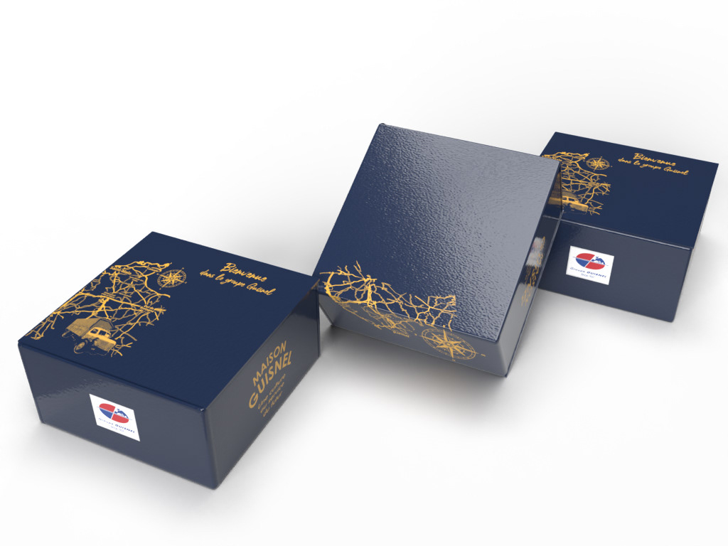 Réalisation d'un rendu de packaging en 3D pour une boite cadeaux d'accueil pour le groupe Guisnel.
