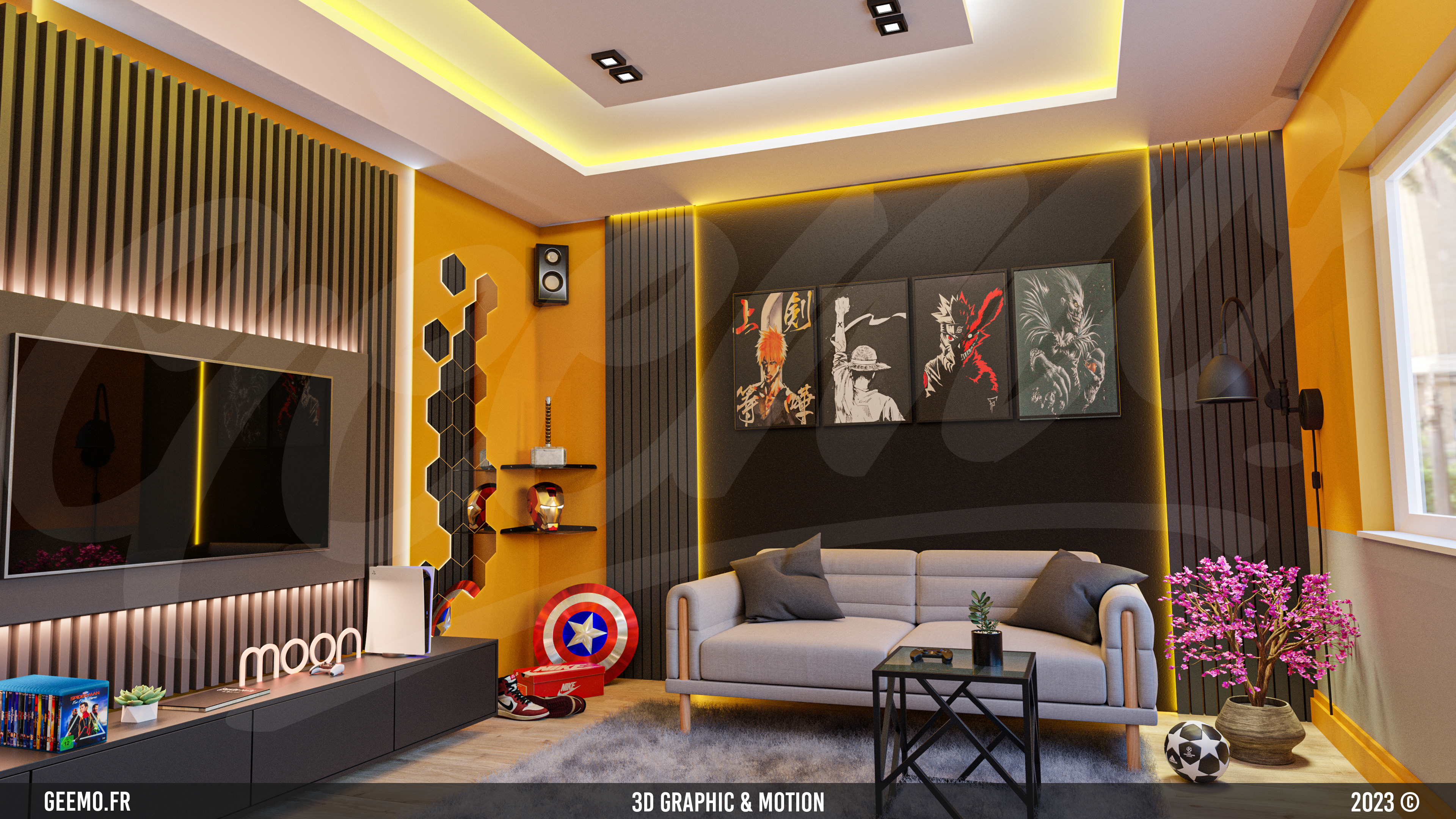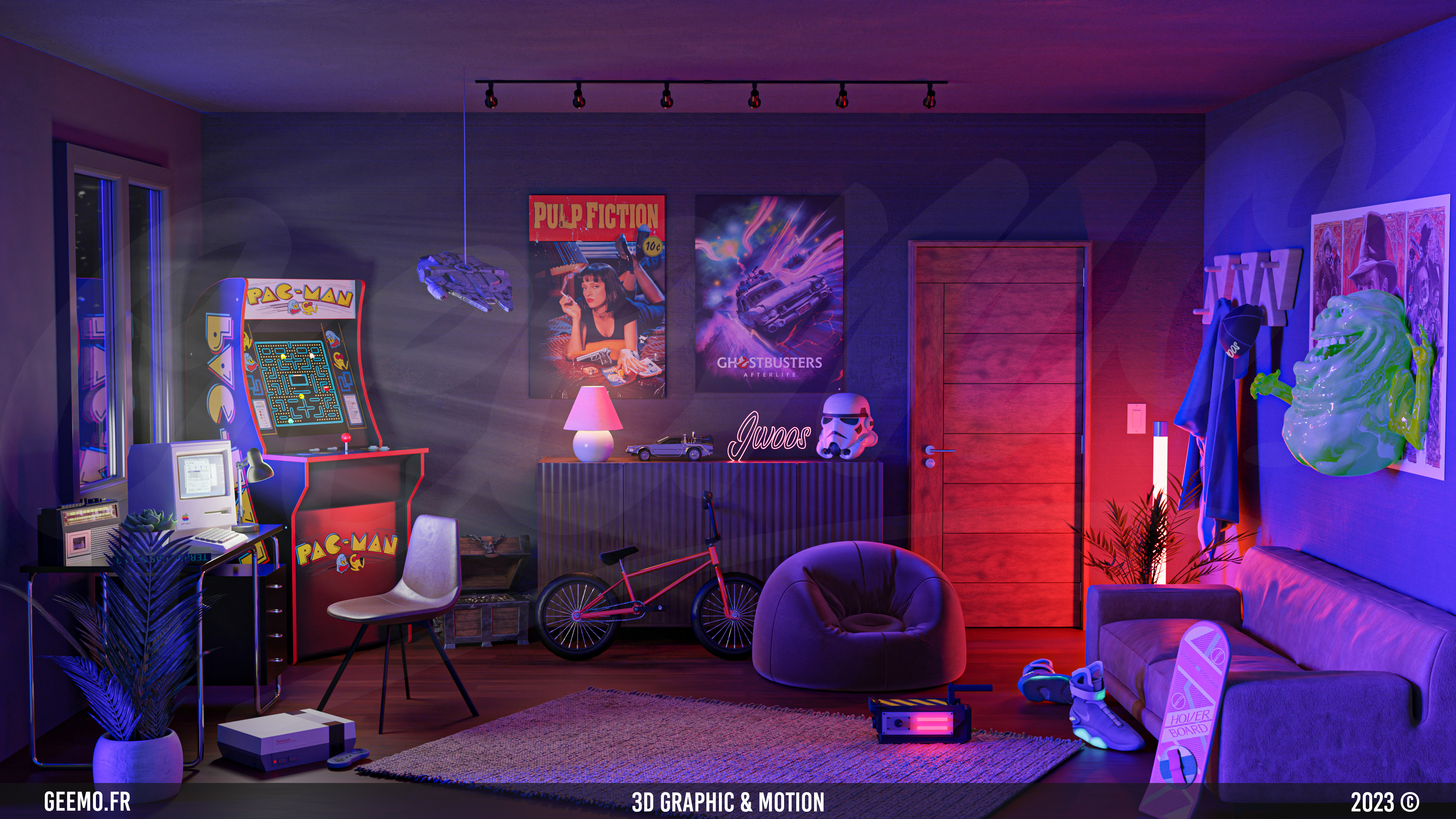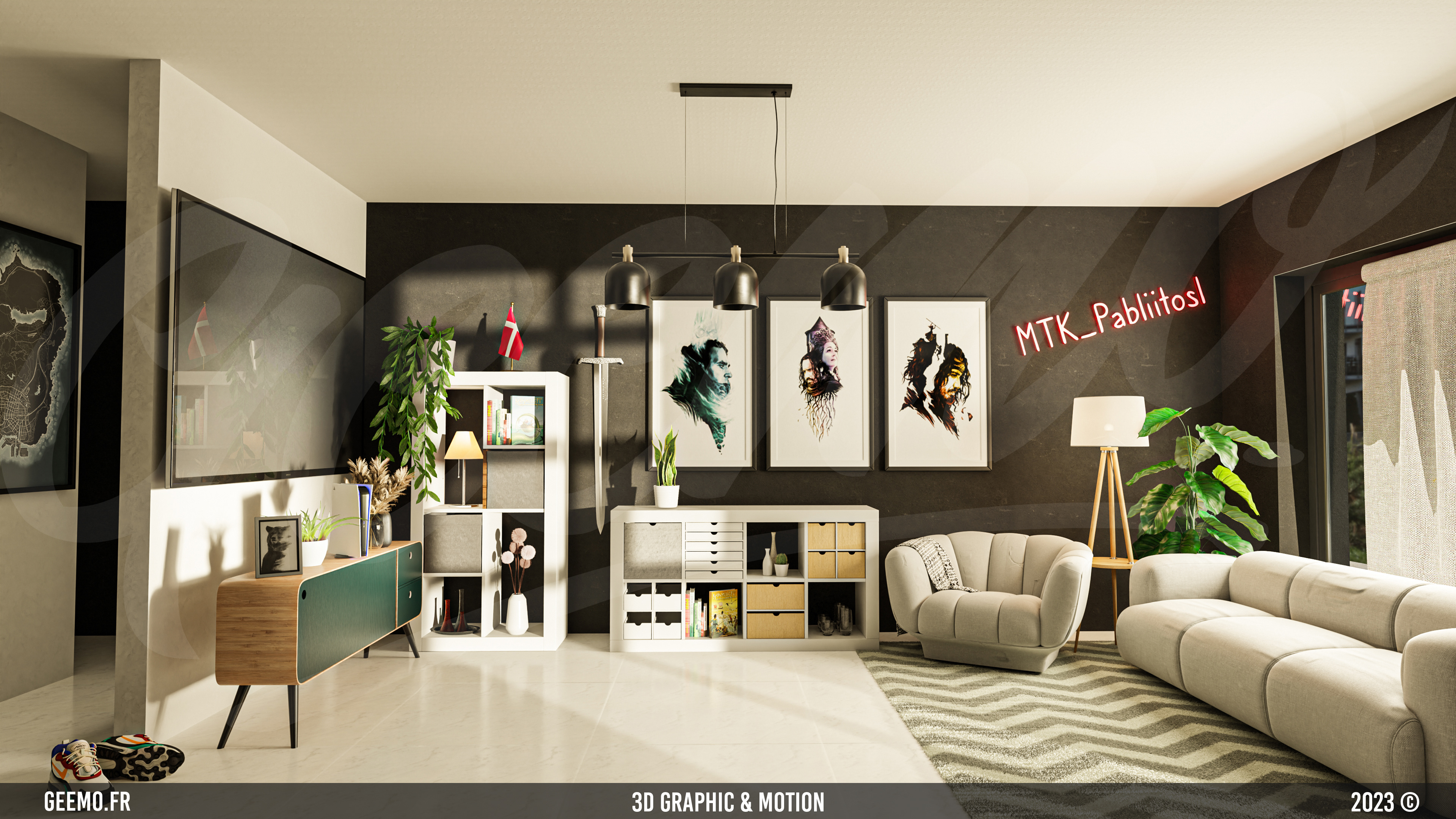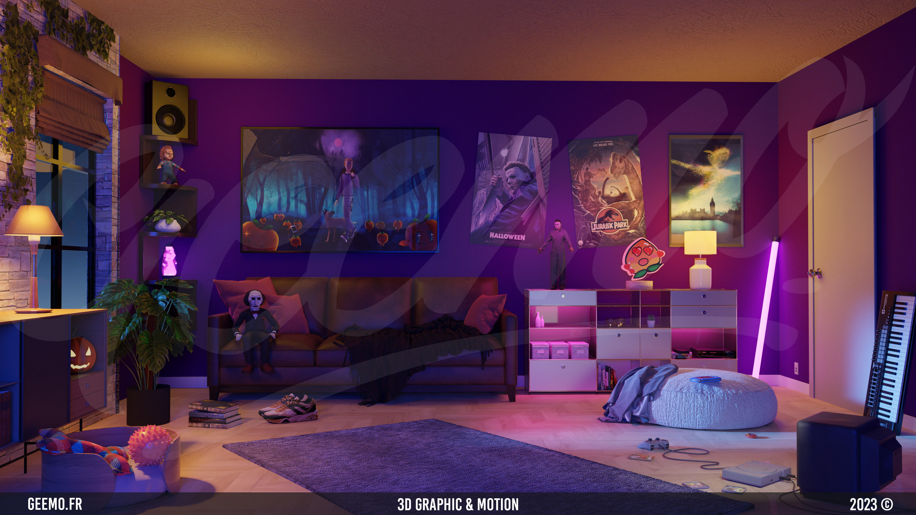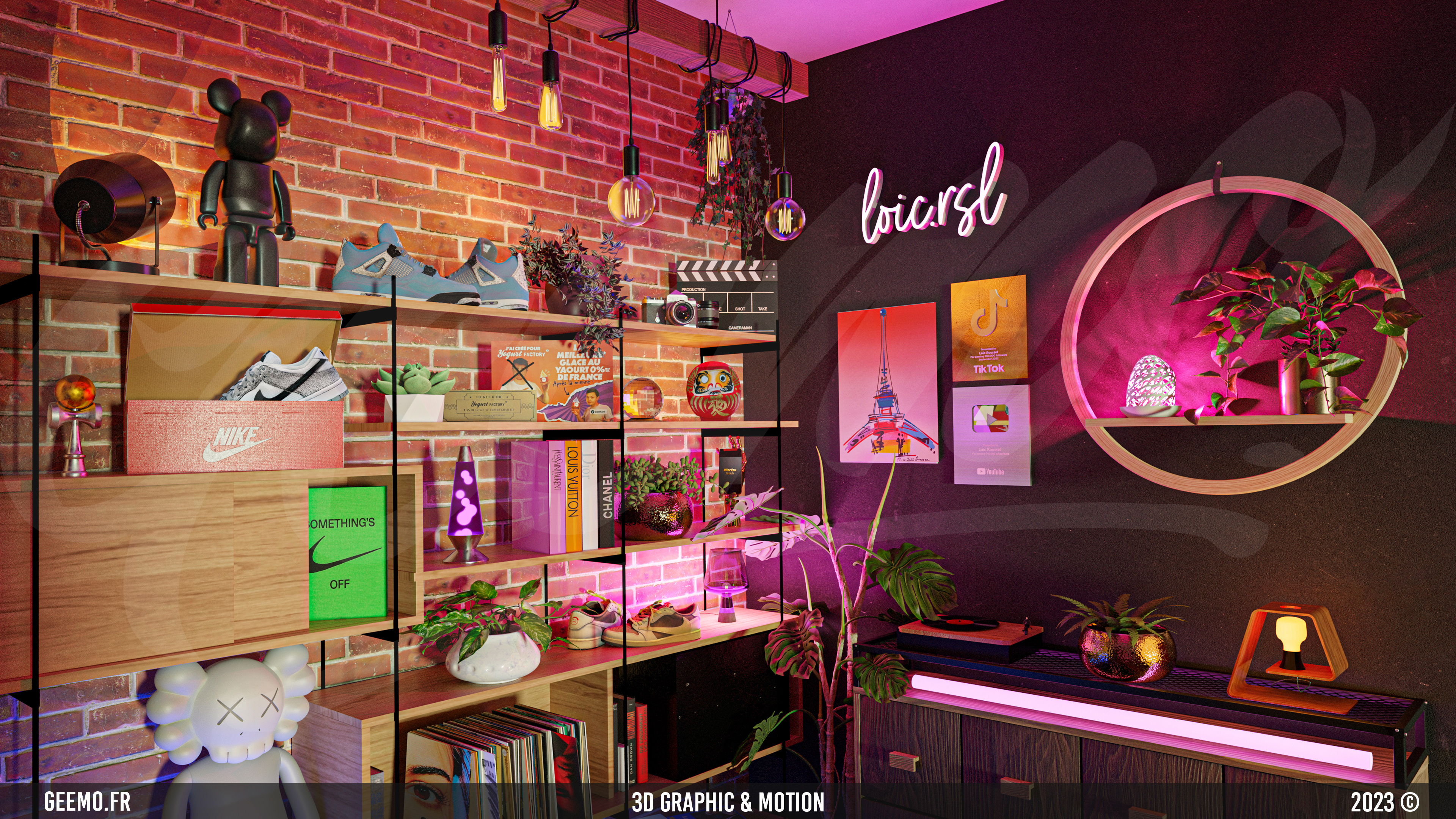 Scènes 3D que je réalise pour des Streamers/Youtubeurs, qui les utilisent comme décor en incrustation sur fond vert.